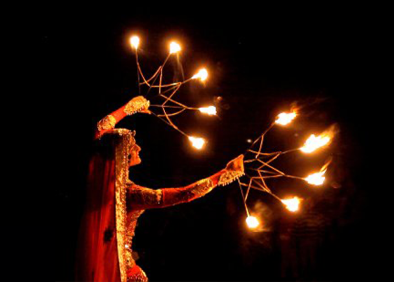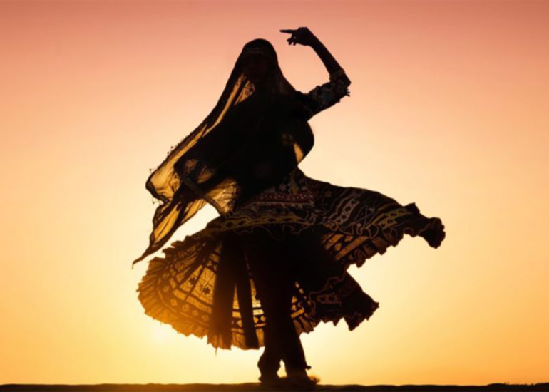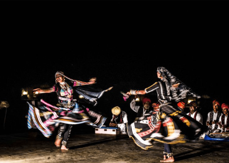 Kalbelia dance is popularly known as the snake charmer dance. In this folk dance, Women are dressed in ethnic attire and dance to folk music which men play some popular instruments include khanjari, pungi (a percussion & woodwind musical instruments), and dholak (a hand drum). Women wear Angrakhi and Odhani on a long skirt to perform this folk dance.
